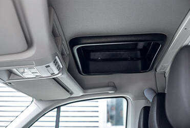 Spośród akcesoriów do Proace MAX kontener można wybrać spojler dachowy, kabinę sypialnianą, ogrzewanie niezależna postojowe, poduszki pneumatycznem dodatkowy akumulator, czujniki parkowania, sklejka 18 + dodatkowe trawersy.